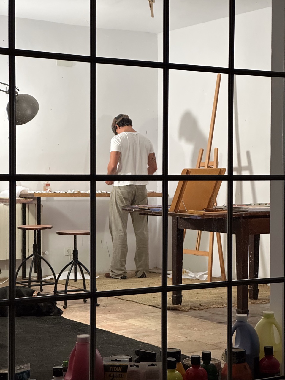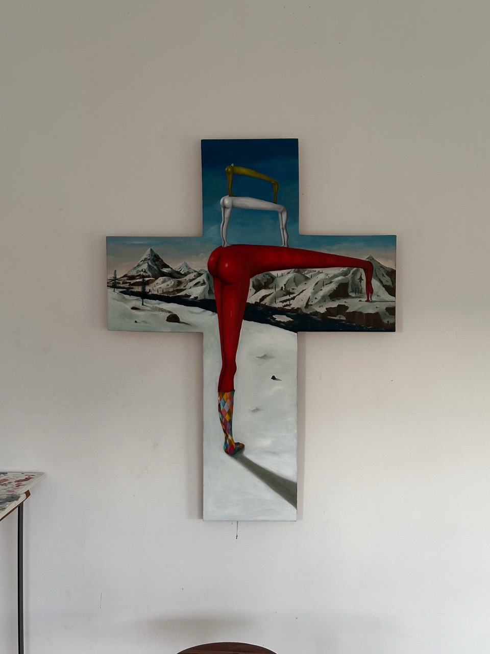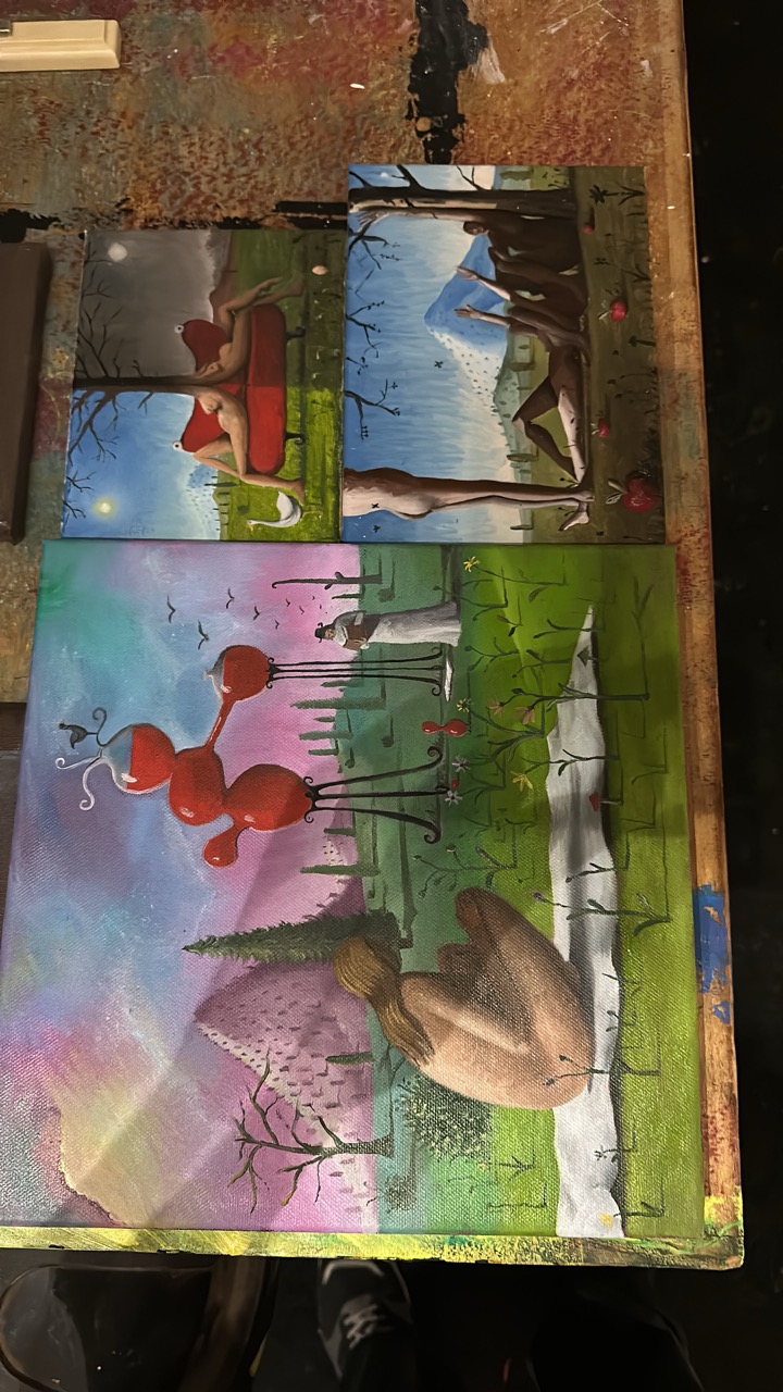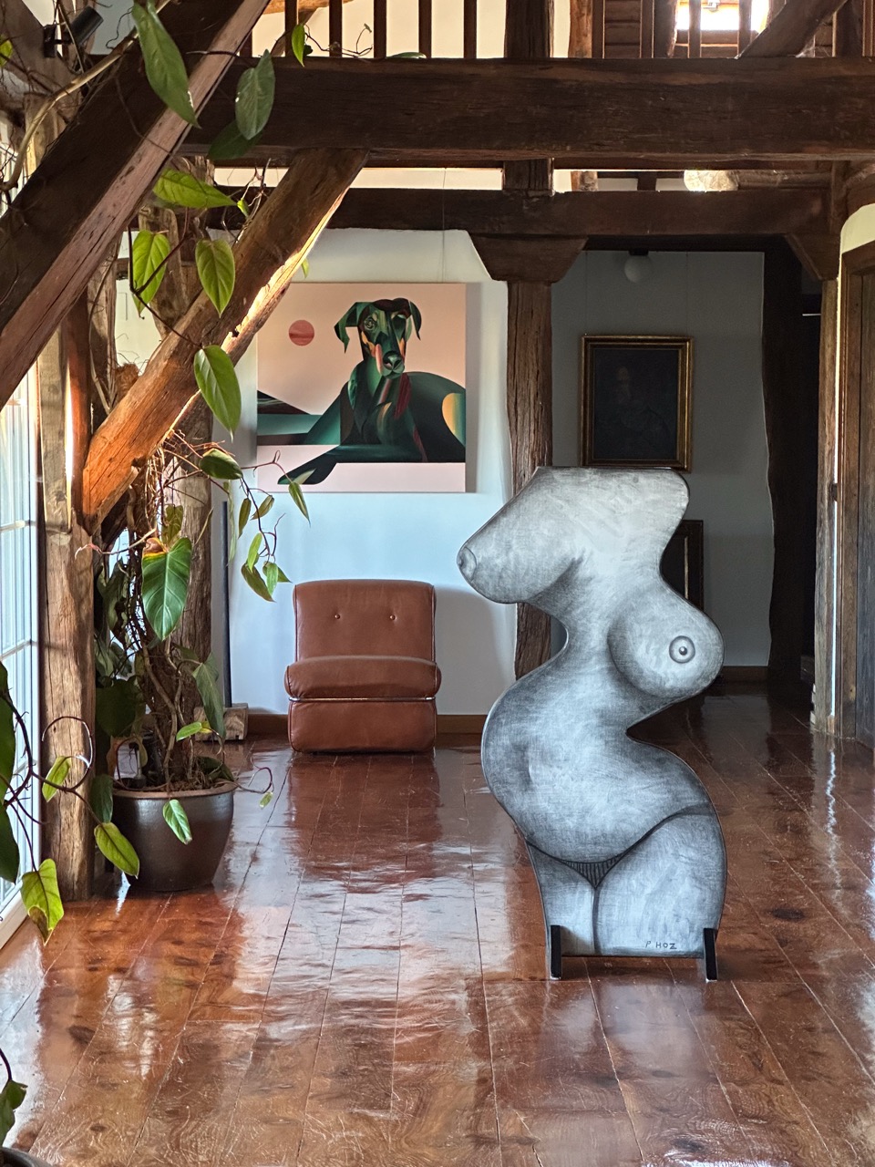 His pictorial gesture, free from planning, is driven by intuition and allows forms to reveal themselves through the process: fragmented figures, improbable anatomies, liquid architectures, and signs that elude narrative interpretation.