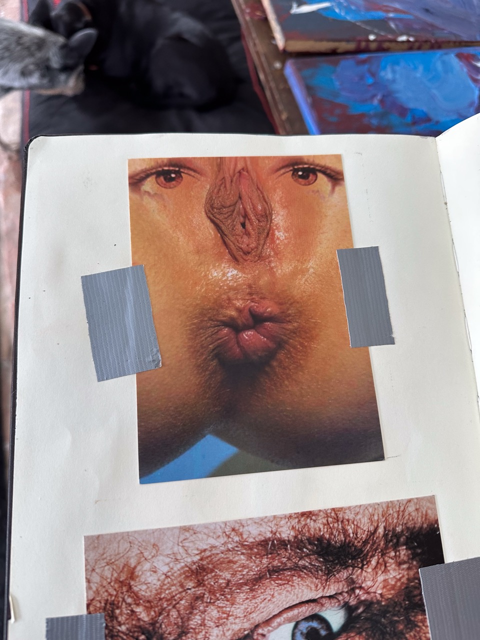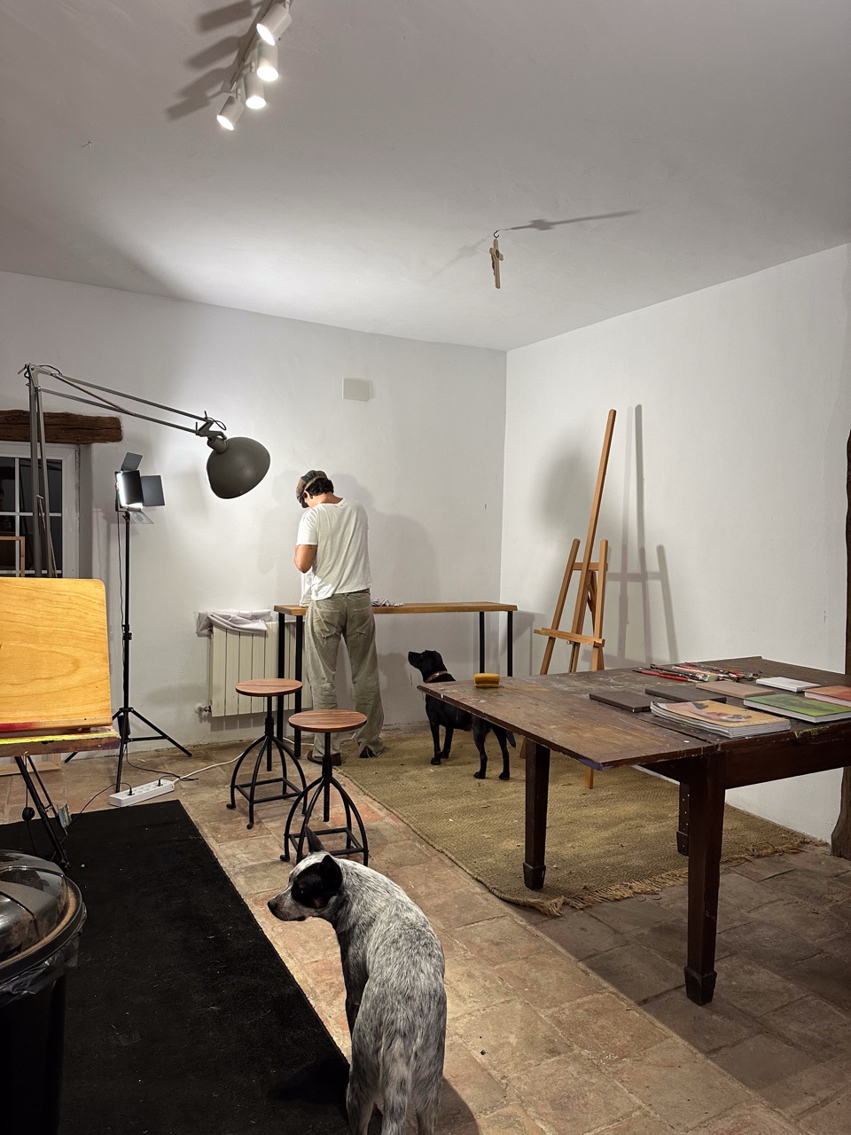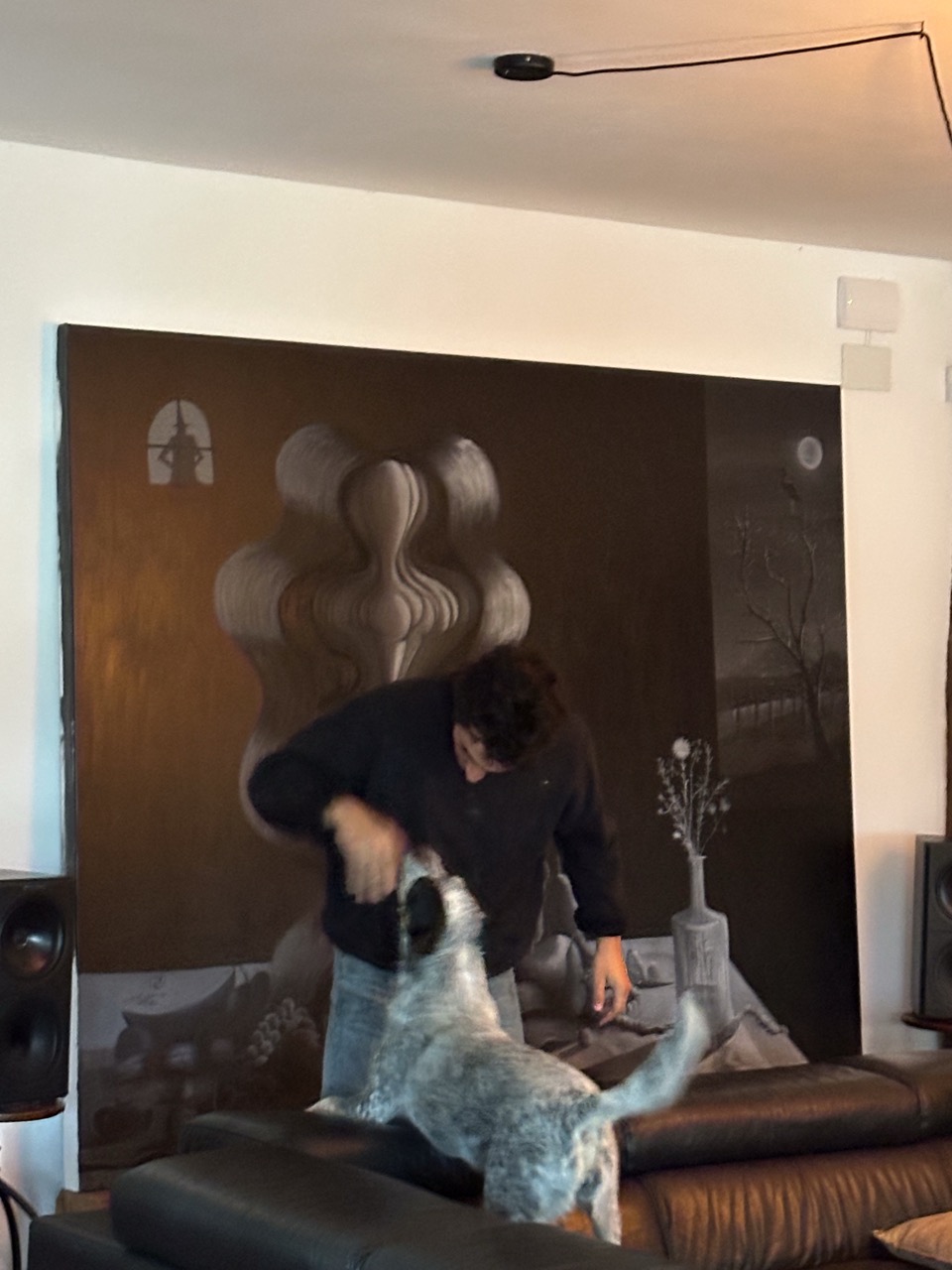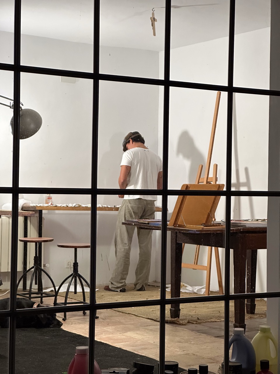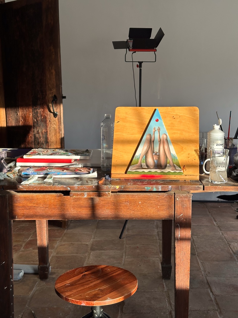 His pictorial gesture, free from planning, is driven by intuition and allows forms to reveal themselves through the process: fragmented figures, improbable anatomies, liquid architectures, and signs that elude narrative interpretation.