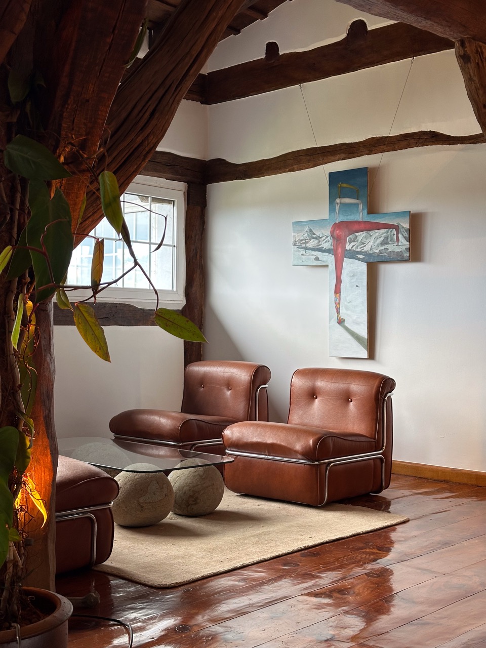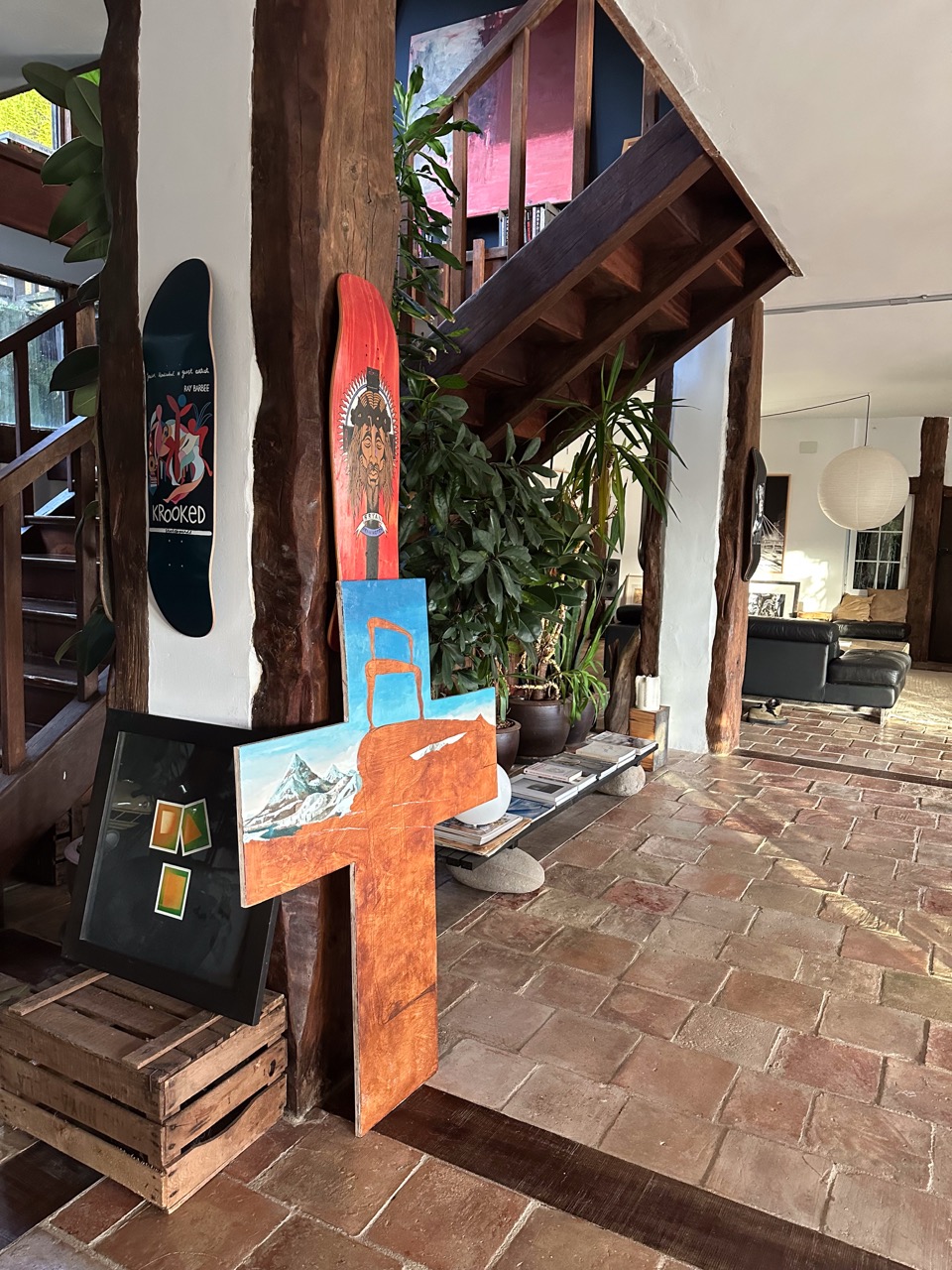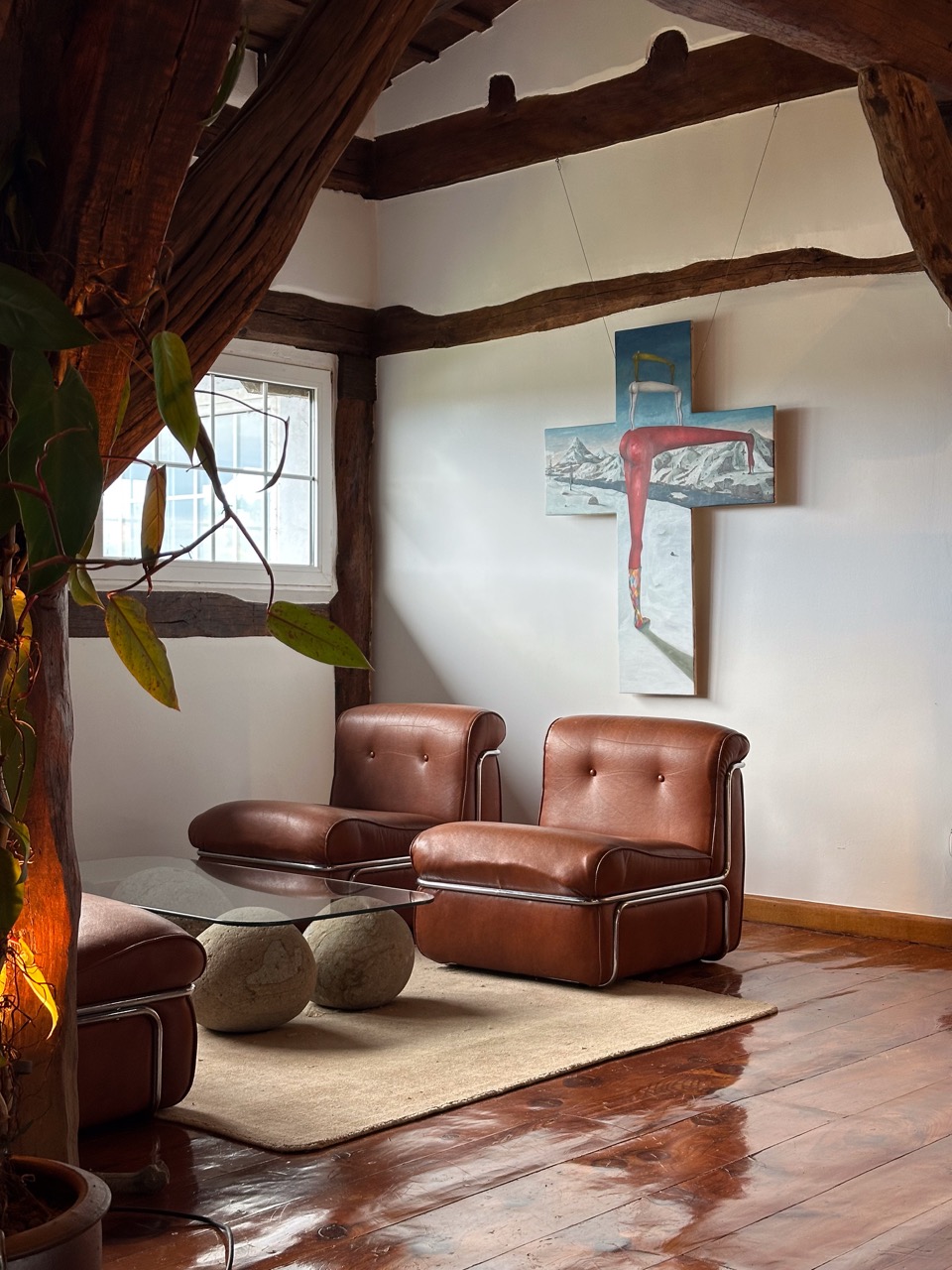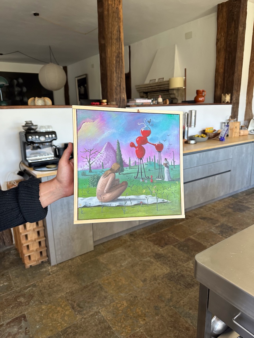 His pictorial gesture, free from planning, is driven by intuition and allows forms to reveal themselves through the process: fragmented figures, improbable anatomies, liquid architectures, and signs that elude narrative interpretation.
