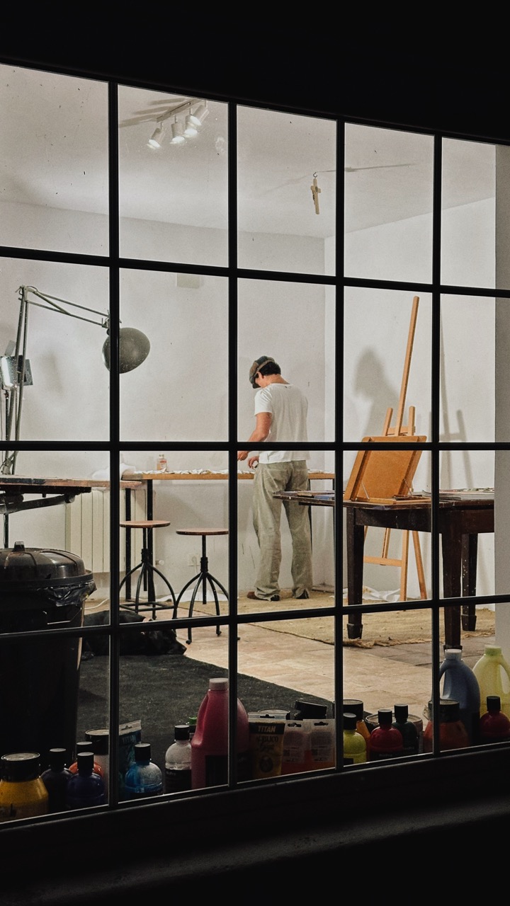 Pedro Pablo Hoz Domínguez (Málaga, 2000) creates paintings that are not meant to be understood intellectually, but rather felt on a deeper, more perceptive level. Each of his works seems to emerge from a space of invocation rather than construction, as if responding to an inner rhythm that predates language.